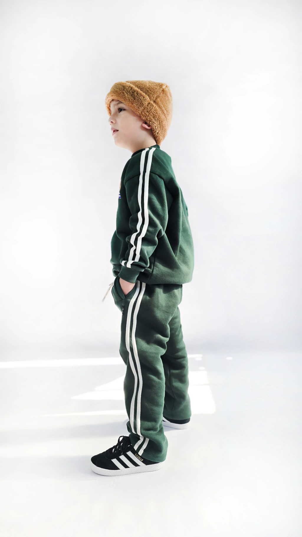 Jogging de frisa de algodón. Corte BAGGY, holgado en la parte superior, recto en la botamanga. Largo hasta los tobillos.