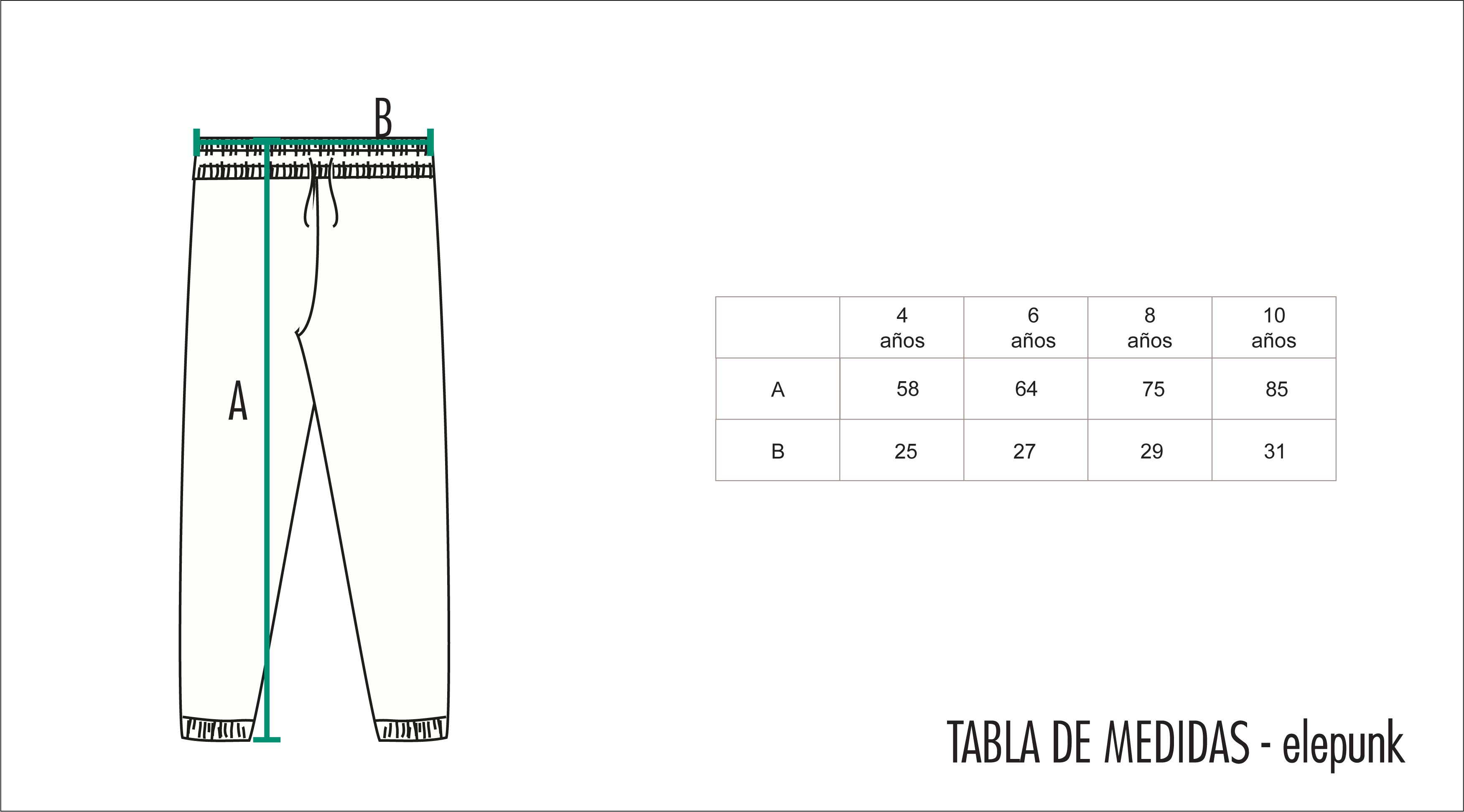 Corte holgado, botamanga recta. Tiene elastico y tancas para ajustar el puño a gusto.
