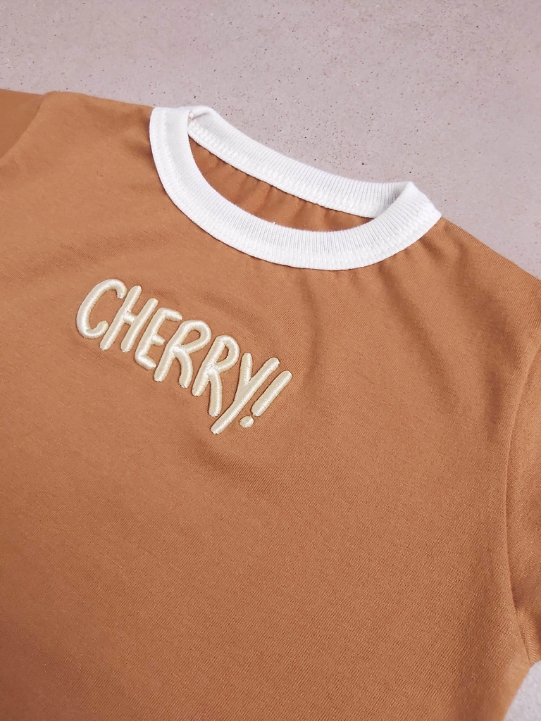 Remera de Jersey de algodón 24/1 con puños y cuello de Rib a contratono y bordado 3d en el pecho.