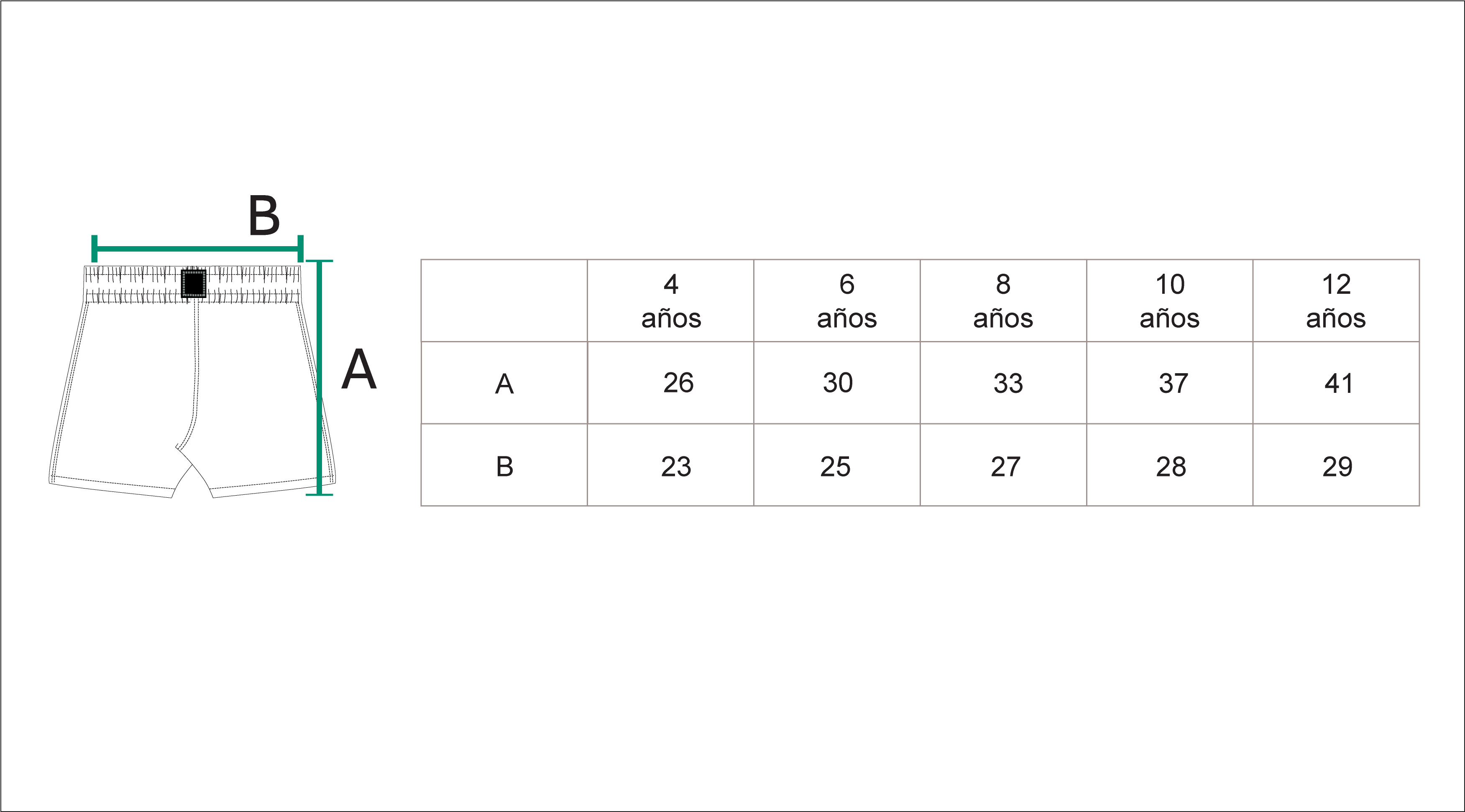 Recomendamos comparar estas medidas con una prenda similar que le quede bien al niño para una compra segura.